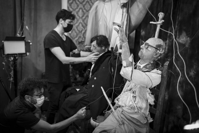 Los muñecos están hechos en base a moldes de nuestros cuerpos, así que son completamente tamaño real. La verdad siempre hemos trabajado a tamaño real. Así lo hicimos en nuestro largometraje La Casa Lobo y en casi todos nuestros cortos anteriores. Nos acomoda y nos gusta por varias razones: es físicamente más divertido; nos interesa la dimensión escultórica de nuestros trabajos y las miniaturas o maquetas no nos ofrecen una experiencia muy rica en ese sentido; y por último nos parece mas lindo tomar objetos reales que tener que diseñar y construir maquetas. Cuando trabajas en pequeño todo se vuelve muy diseñado y controlado y a nosotros nos gustan los accidentes.