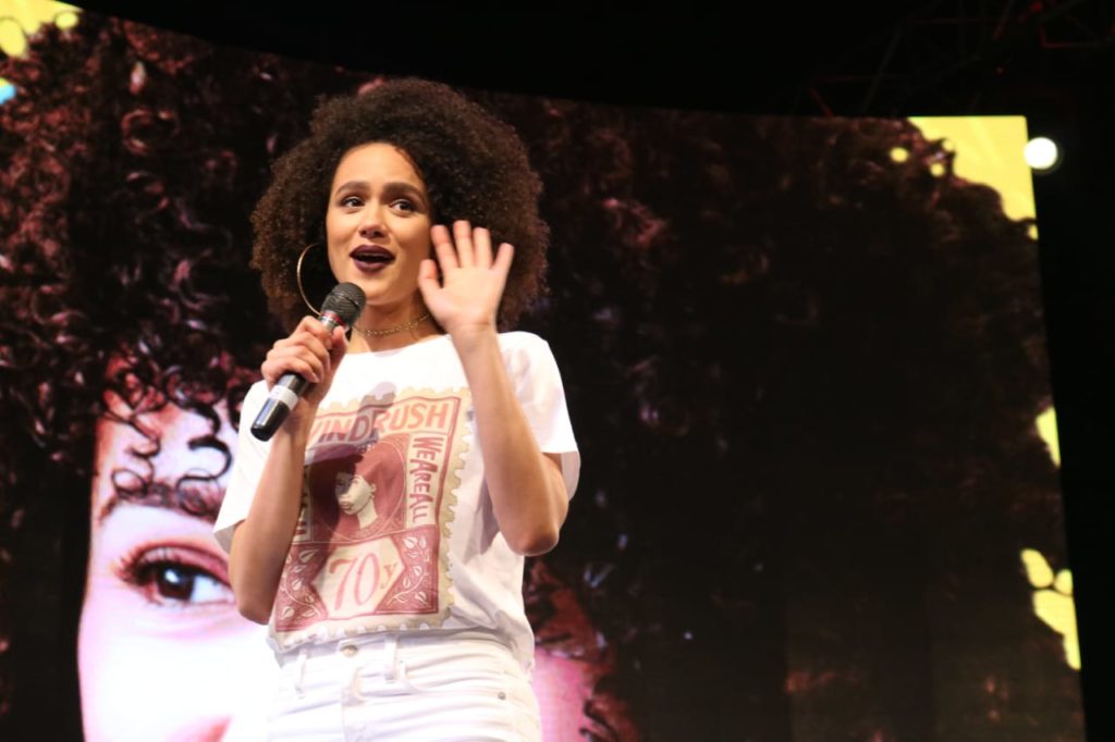 La actriz Nathalie Emmanuel, quien interpreta el personaje de Missandei en la serie Game of Thrones, participó ayer en uno de los paneles exclusivos de la novena edición de la Argentina Comic-con.