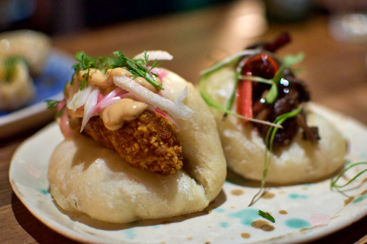 The dumplings, handmade one by one, steamed and then finished on the pan, crisp in all the right places. You’ll find the classic gyoza (pork + shrimp + scallions) and a veggie version (black beans + sweet potato + caramelized onion). Brushed with soy sauce and topped with fresh sprouts.
