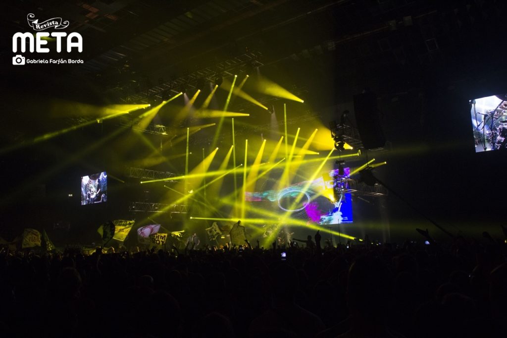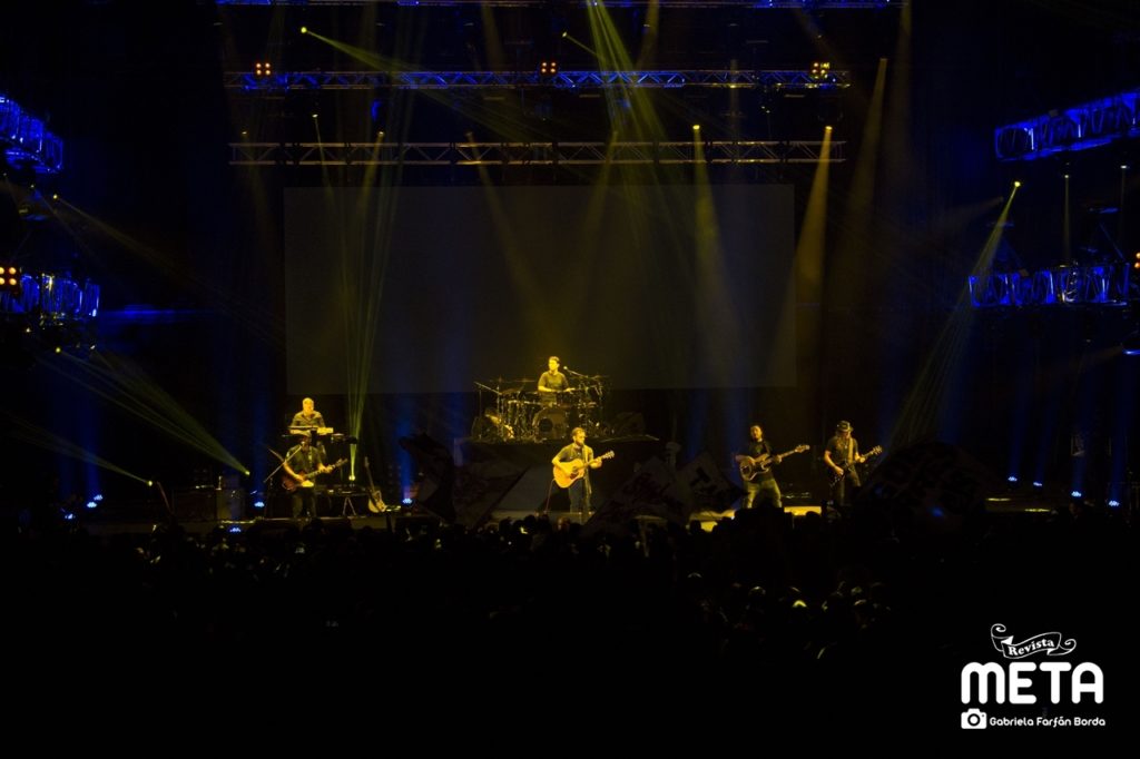 El escenario incluyó una buena disposición de luces, las cuales yacían arriba, a los costados y hasta en el piso del mismo. La pantalla central contó una producción un poco austera: sólo se reproducían imágenes computarizadas que, en algunos momentos, poco tenían que ver que la canción ejecutada. Más adelante cobró fuerza al exhibir viejas imágenes de la banda y también al utilizarla como monitor para mostrar lo que pasaba arriba y abajo de las tablas. La batería de enérgico Javier Robledo estuvo un poco más elevada de lo que se está acostumbrado a visualizar, siendo esto un acierto para la puesta de los músicos y la visión de los presentes. La potente introducción de “Alma en tregua” debió ser suspendida ante el reclamo de Polilla, quien al ver que personal de seguridad intentaba sacar del recinto a una persona que había traspasado la valla, frenó la canción. “No caguen la noche”. “No rompan los huevos”. “¿Apareció el pibe?”. “¡Seguimos!”. La canción del disco “Marea” culminó con exquisitos arreglos de teclados y percusión, tras el fervoroso aplauso al cantante, que reclamó por el chico. Pasaron “Alcalina” y la potente “De caer”, entre otras composiciones, mientras la noche iba tomando forma.