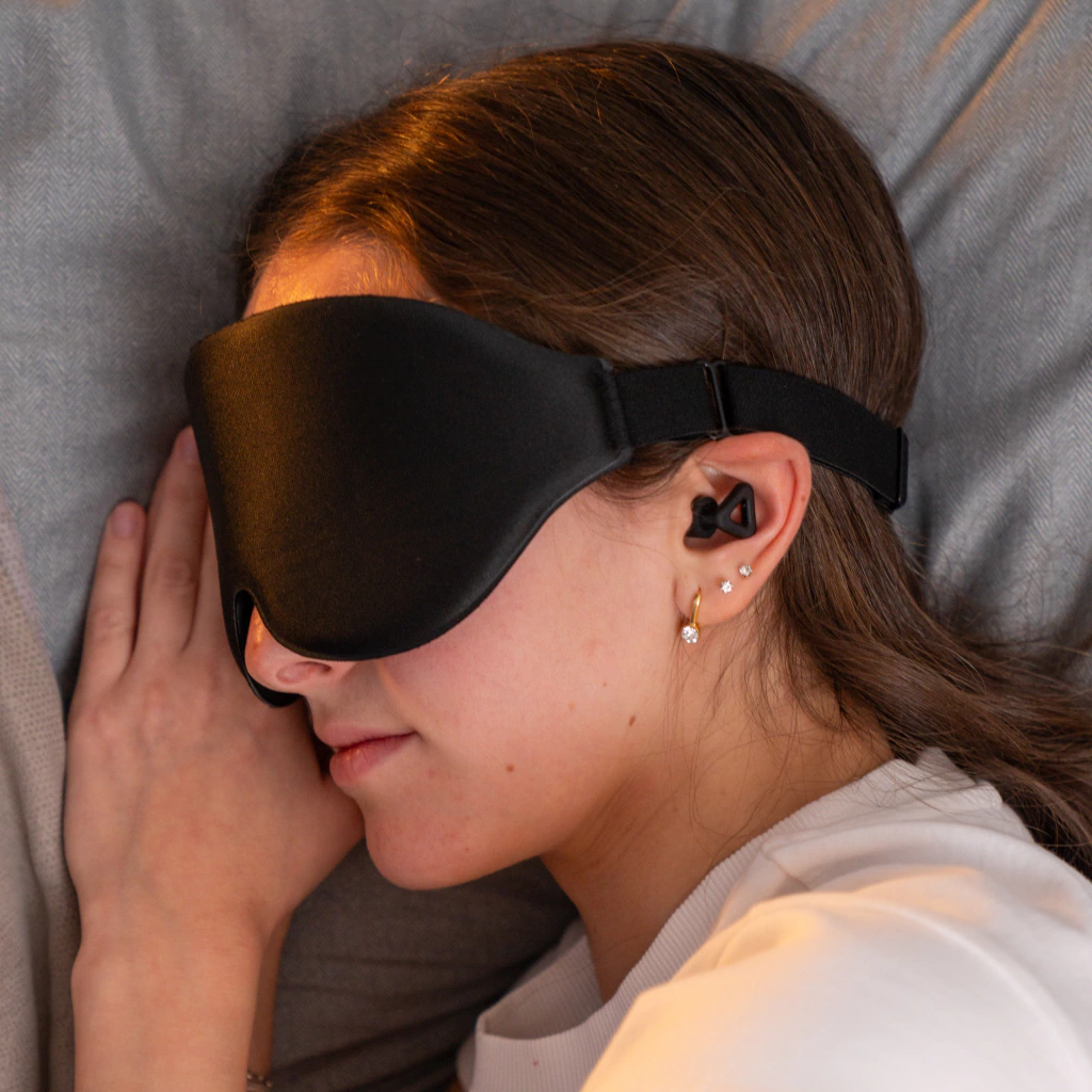 El antifaz es un accesorio que complementa al Clog BED. Está fabricado en espuma inteligente y su función principal es bloquear la luz. Es una solución pensada para personas que no cuentan con un buen oscurecimiento en sus ambientes y buscan mejorar la calidad del descanso combinando reducción de ruido y control lumínico.