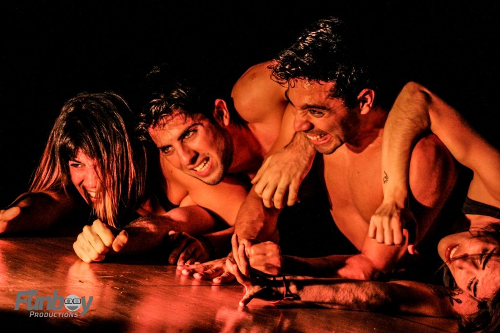 Integran este grupo Rosario Caivano, Nicole Ulrich, Rodrigo Garro y Facundo Pennesi, todos excelentes gimnastas, con destrezas variadas y bajo la dirección coreográfica de Rodrigo Garro Velázquez. La iluminación muy bien diseñada, a cargo de Maimara Bracamonte forma parte importante en el relato y se podría decir que es un personaje más dentro de la obra.