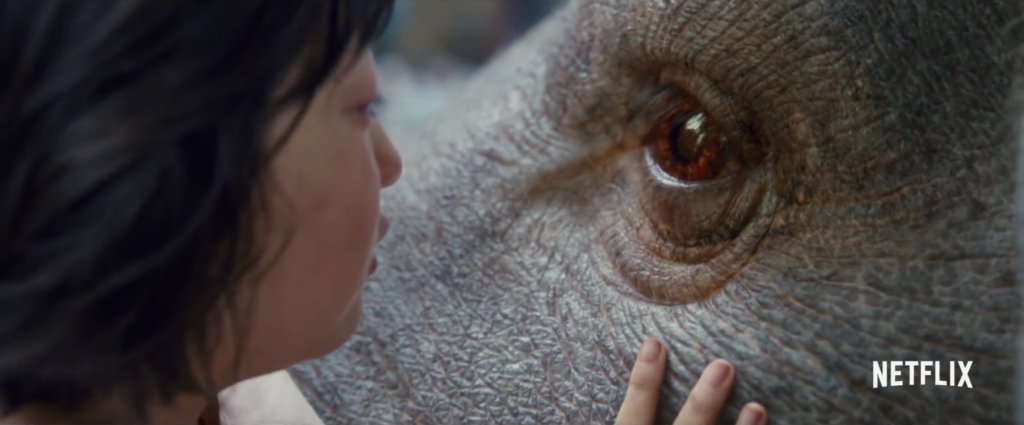 En algún lugar de Corea uno de esos agricultores y su nieta, la pre-adolescente Mija (Ahn Seo-hyun) viven con su súpercerdo, Okja. Hecho de un convincente CGI, Okja es una mezcla de hipopótamo, elefante y perro de gran tamaño que actúa como un cachorro y está dotado de inteligencia y facultades emotivas. En un primer acto que remite directamente al Miyazaki de Mi Vecino Totoro, Bong retrata con maestría el vínculo amoroso entre Mija y Okja casi sin diálogos.