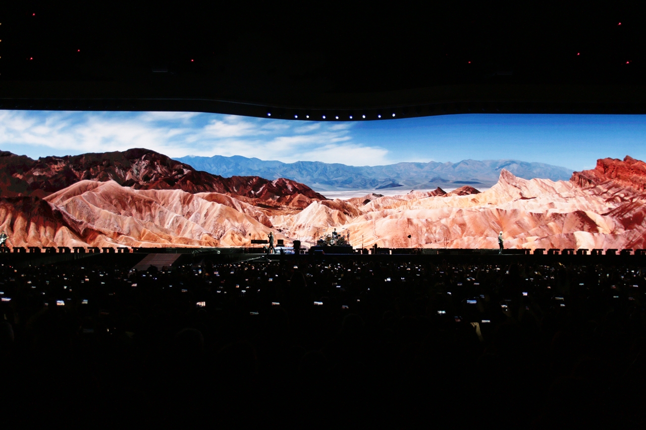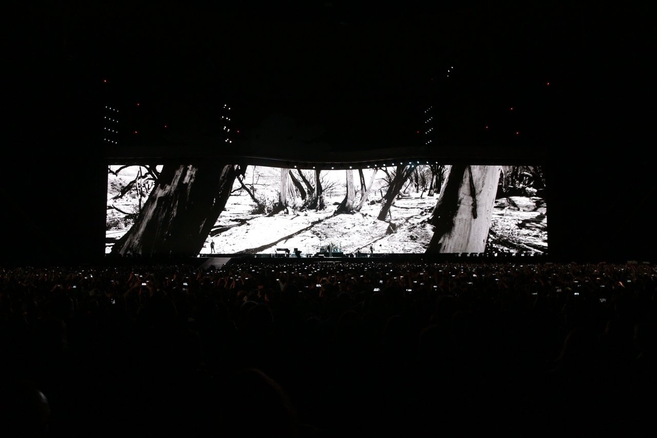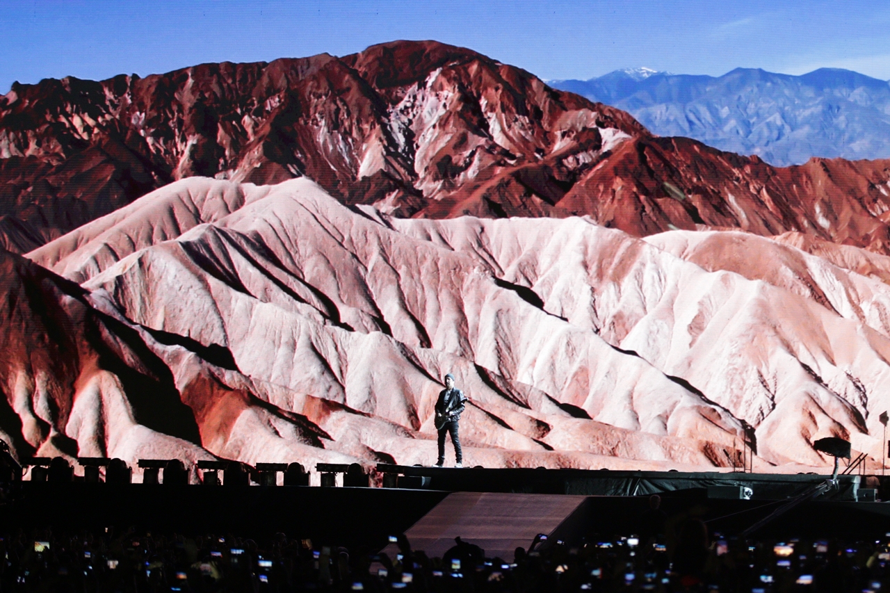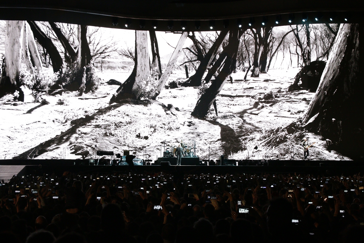 La enorme pantalla (60 metros de largo y 14 de alto) de alta definición con la imagen del árbol -que hasta sobresale de la misma- no tuvo nada que envidiarle a los recursos tecnológicos que los irlandeses tienen acostumbrados a traer en sus giras, porque la simbiosis producida entre el sonido y la imagen resultó increíble. El recurso fue explotado al máximo, y las más de 40.000 personas que llenaron el estadio no pararon de sorprenderse con el correr de los temas, donde el revival de “The Joshua Tree” (1987) representa la columna vertebral de esta gira que se ideó en diciembre de 2016 y arrancó en mayo de este año en Canadá. “Where the Streets Have No Name”, “I Still Haven’t Found What I’m Looking For” y “With or Without You” iniciaron la segunda parte, y las imágenes que comenzaron a sucederse en la pantalla (ruta, montaña, cowboys y desierto del oeste) – a cargo del director y fotógrafo Anton Corbjin, quien también los retrató en el desierto de Mojave para la tapa del clásico disco – crearon un marco único e inigualable.