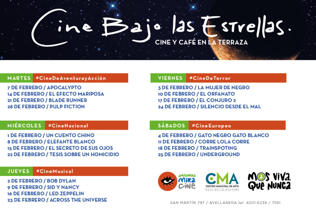 Ciclo de funciones cinematográficas nocturnas en la terraza del CMA a las 20.30hs