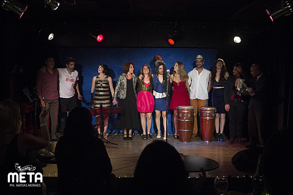 Un café concert elegante. Cantante anfitriona, músicos en escena, mesitas para comer y beber. Una sucesión de personajes vestidos de gala que irrumpen para relatar su buen sufrir y hacer catarsis a través de la música. El espíritu de Amy Winehouse, un partido de River, la pasión por Valeria Lynch, la salvación de parecerse a Mina, divas en apuros, un cubano triste, un japonés enamorado. La vida chocará contra ellos, la conga los salvará.