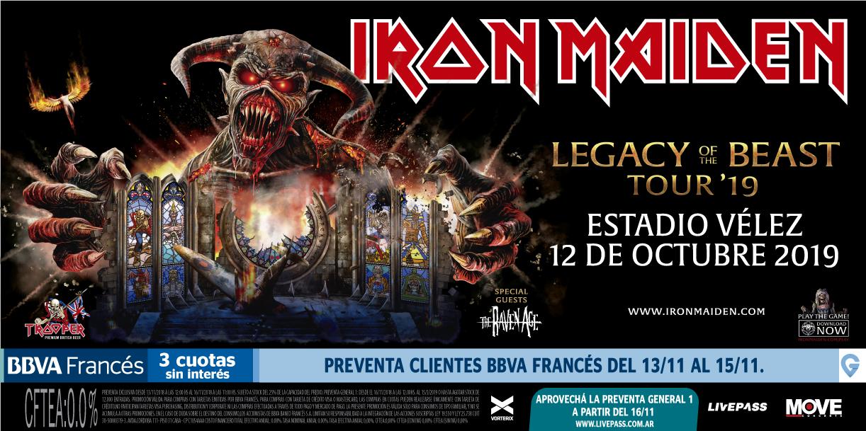 La banda soporte en la gira de 2019 es The Raven Age www.theravenage.com La producción y la lista de canciones de Legacy Of The Beast Tour se inspiraron en el juego gratuito para celulares de Maiden del mismo nombre, que está disponible en las plataformas iOS y Android en