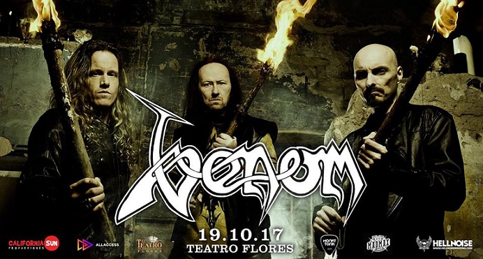 Venom la mítica banda inglesa, considerada precursora del black metal se presentara el jueves 19 de octubre en el “Teatro Flores”, Av. Rivadavia 7806, Flores. En esta oportunidad tocaran temas de su nueva placa “Black Mass” y clásicos de discos como “Welcome to Hell”, “Black Metal”, “At War with Satan” y “Possessed” entre otros.