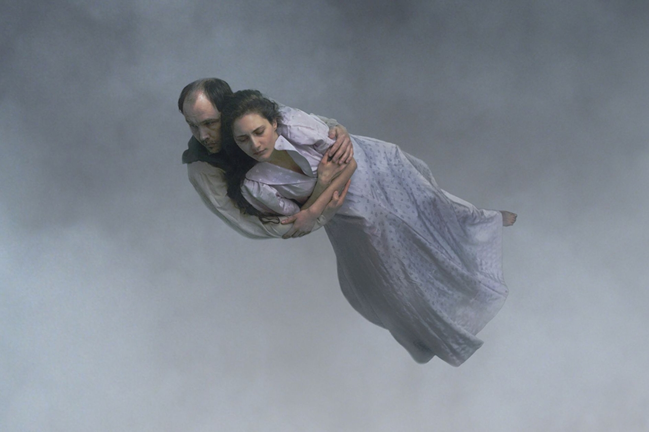 Otra de las particularidades del cine de Roy Andersson (a esta altura es evidente que no se puede hablar de esta película sin hablar de su estilo en general) es el trabajo que realiza con actores no profesionales. Siendo una de sus influencias cinematográficas el neorrealismo italiano de Vittorio De Sica, Andersson toma de este movimiento de mediados del siglo XX la pretensión de mostrar al hombre común, utilizando caras desconocidas y poco identificables con las que el público puede fundirse. Por supuesto, a esto se le agrega una dosis de artificio que es común a toda esta gran obra: los personajes de las viñetas están maquillados de manera casi cadavérica, siendo tan pálidos y grises que se ven aunados en esta gran maraña que es la raza humana. La artificialidad también se pone especialmente de manifiesto cuando tenemos en cuenta que todo lo que se ve en pantalla en About endlessness es hecho en un set de filmación, sin acudir en ningún momento a locaciones exteriores, por más que varias de las escenas sucedan al “aire libre”. Andersson y su equipo de producción le dedican mucho tiempo al armado de estos sets, llegando incluso a tardar dos meses en montar una sola escena, ya que también utilizan trucos de perspectiva (los sets son construidos a partir de la posición de la cámara) que terminan por posicionar a su cine como una verdadera artesanía.