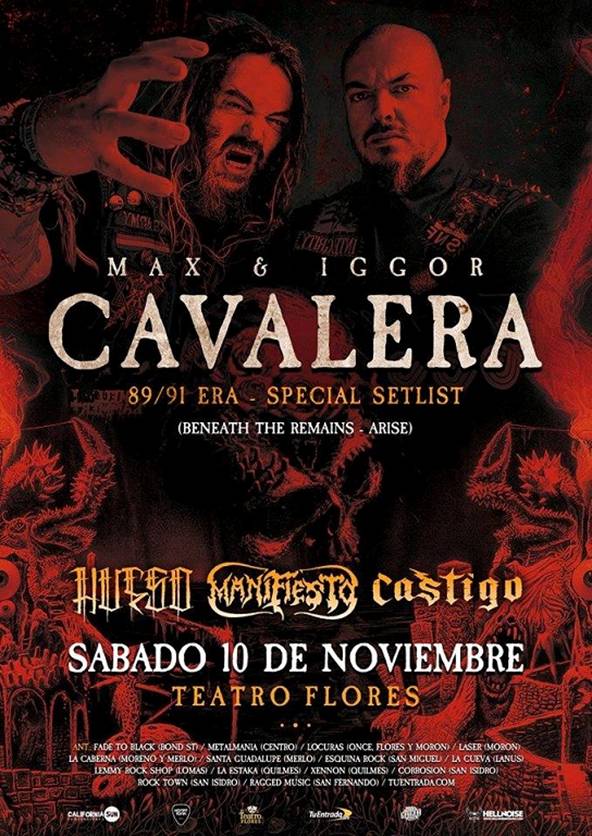 Los legendarios hermanos Max & Iggor Cavalera se presentarán el sábado 10 de noviembre en el “Teatro de Flores”, Av. Rivadavia 7806, Flores, en el marco de de su nuevo tour “Max & Iggor Cavalera 89/91 Era Special Set Lits”.