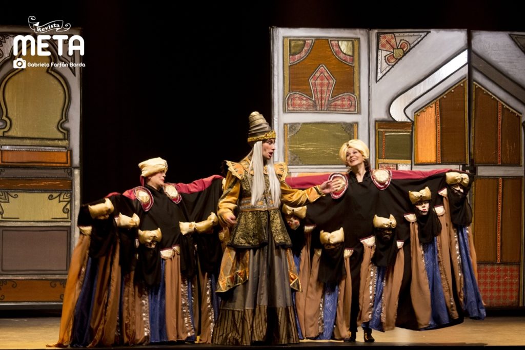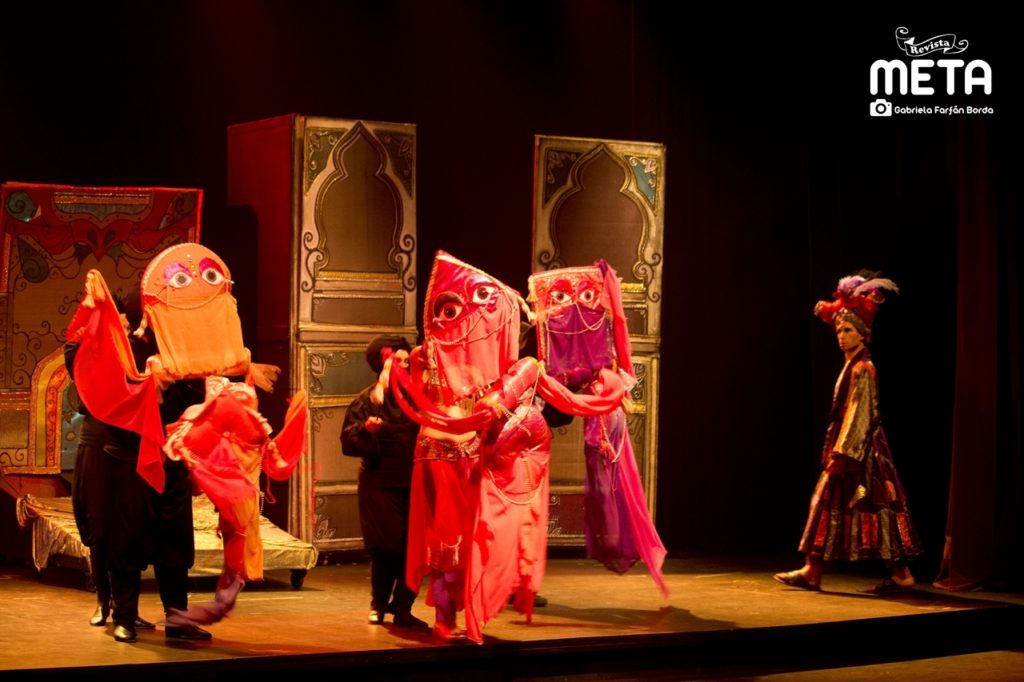 “El elefante mecánico”, “Simbad, el marino” y “Aladino y la lámpara maravillosa” cobran vida bajo las actuaciones centrales de Mathías Carnaghi, que se destaca en diversos roles principales, y Julieta Rivera López, quien encarna a Sherezade. Mimí Rodríguez y Jorge Sánchez, entre otros actores, completan la obra, que desde su inicio atrapa por su puesta visual: desde el teatro negro, para resaltar las técnicas titiriteras, hasta diversos vestuarios muy logrados que dan forma a los disímiles cuentos, pasando por genios voladores y proyecciones de sombras que también conforman los diferentes momentos que presenta el espectáculo, que también destaca por su sonido, siendo audible en todos sus pasajes.