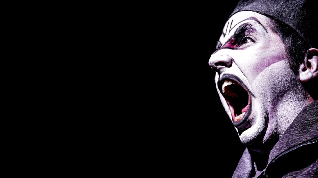En parte por el trabajo de maquillaje, que se deja ver desde primer momento. Una reminiscencia del expresionismo alemán pero plasmado en sus caras. Colores plenos, blancos y negros marcando las luces y sombras en diagonales y pinceladas rectas marcando las expresiones del rostro. Este logrado maquillaje y el buen desempeño de les actores mantienen a los personajes como tales hasta el fin.